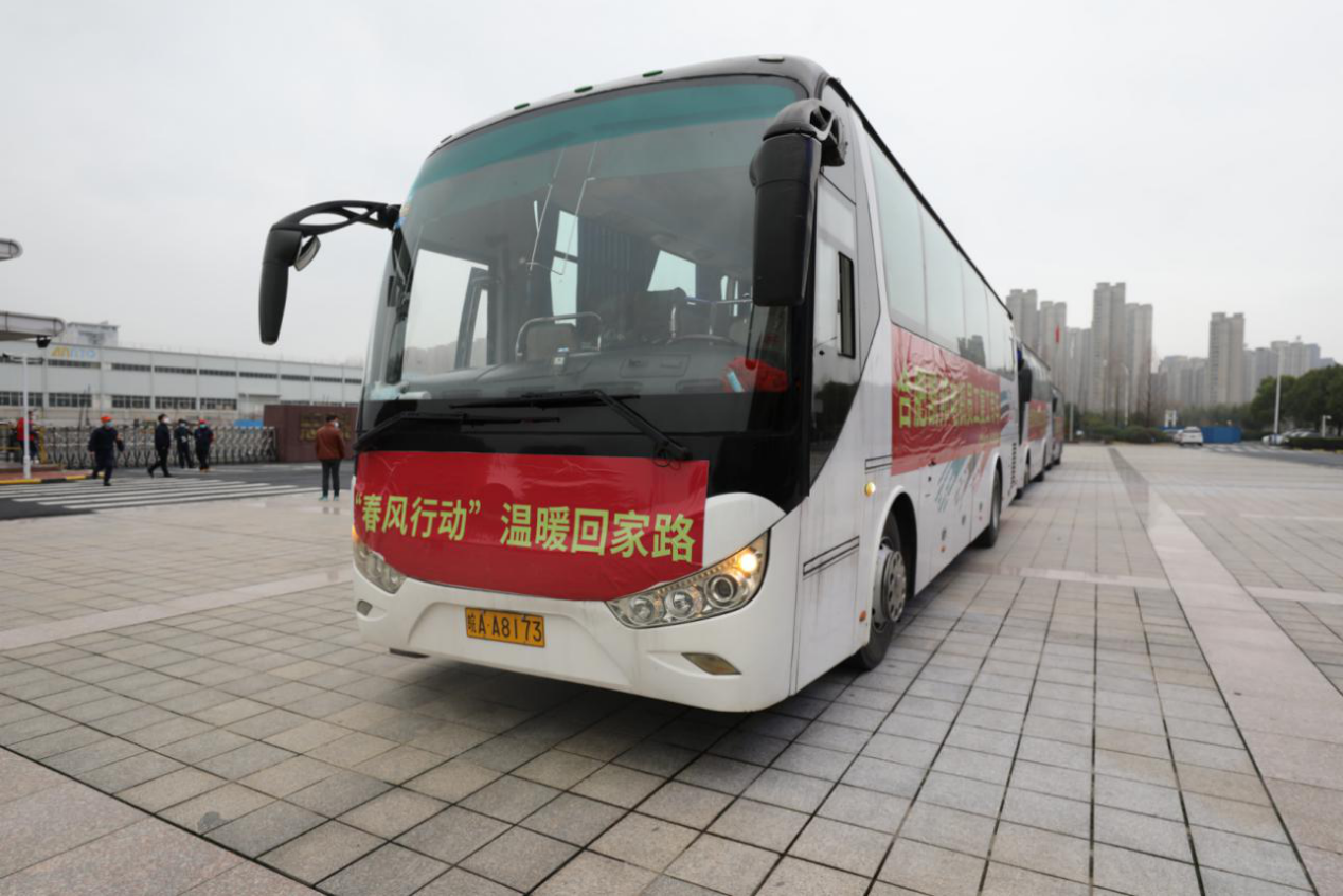 2月29日下午,「春風行動」溫暖回家路「復工專車」遠赴河南鄭州接回60名工人