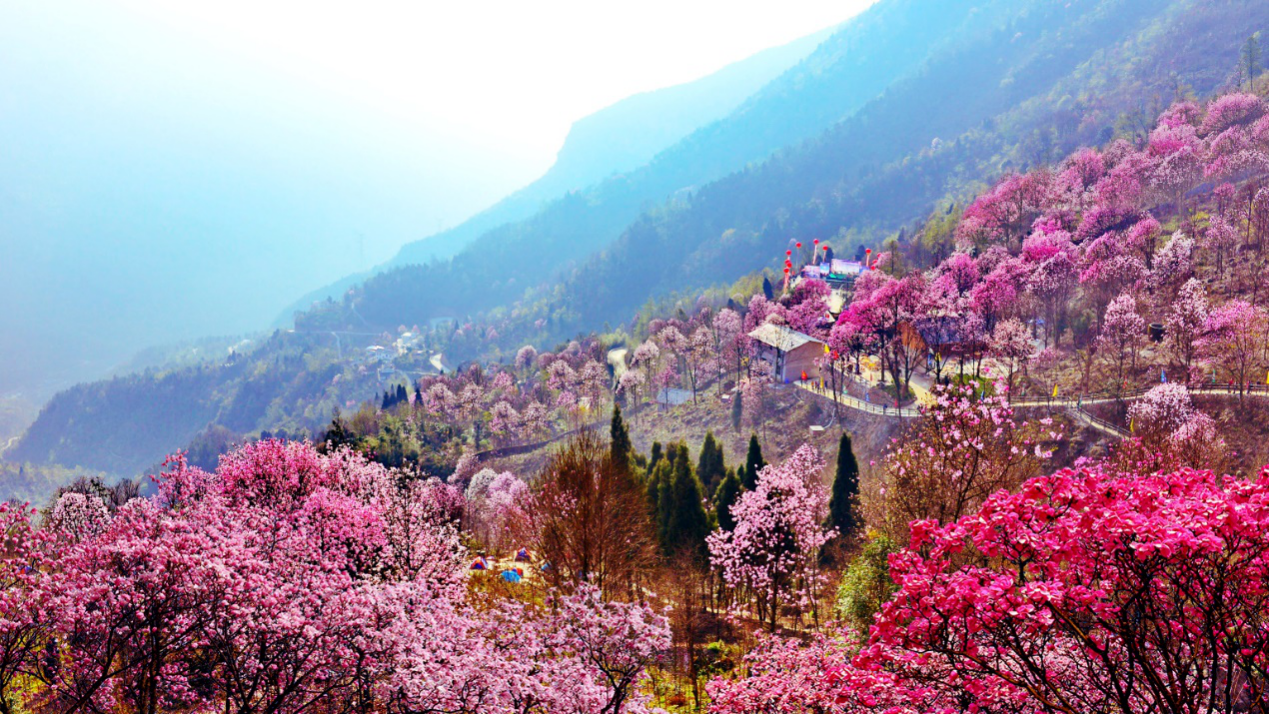 遍山盛開的辛夷花海 資料圖