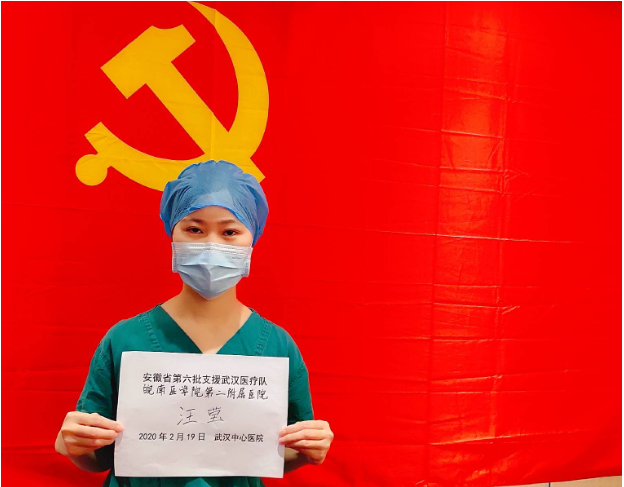 汪瑩通過微信視頻告訴記者,3月5日,她在抗疫一線鄭重地向黨組織提交了入黨申請書,面對黨旗莊重宣誓,許下錚錚誓言,光榮地加入了中國共產黨。「和平年代我們沒有經歷過戰爭,這一次,我要自己的實際行動接受黨組織的考驗。」