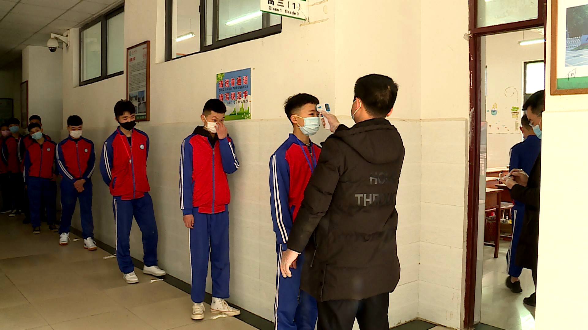 「我校前期召開了籌備會。對各個工作崗位的人員進行了培訓,並對校園各個地方進行了消毒。今天學生按照分班、錯時、分校門,錯峰入校,並對每位學生進行體溫監測,確保我校順利開學。」該縣第四中學副校長崔德洪說。