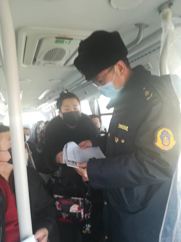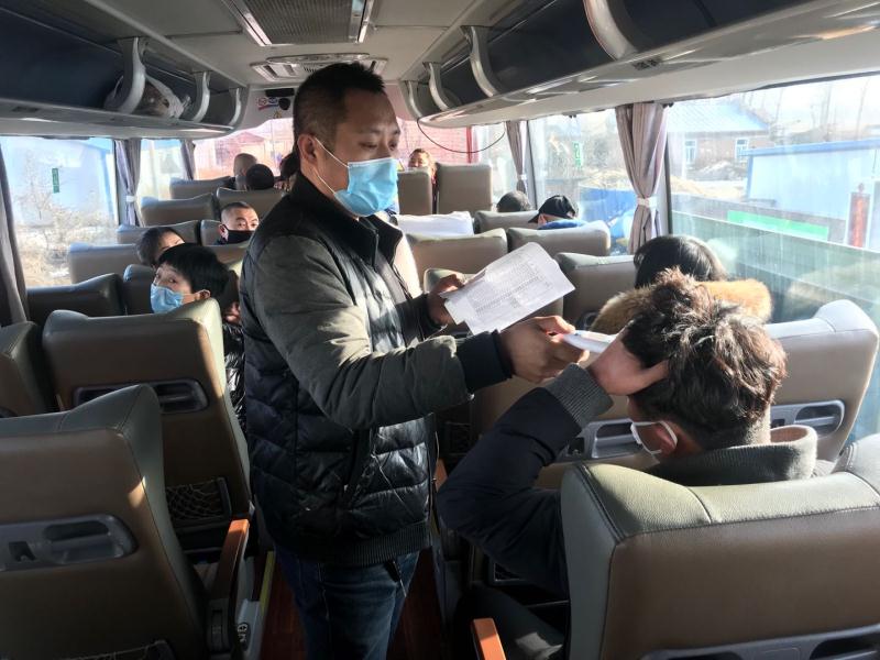 在現場,雙城區交通運輸局運管站工作人員對運營客車的經營資質、駕駛員從業資格、車輛通行證及包車手續進行了嚴格檢查。按照客運車輛的乘坐率參照中風險地區不超過50%的要求,對乘坐率進行的檢查,該車定員59人,實載28人(包括2名駕駛員),符合運營要求,運輸企業專車「點對點」接送農民工。對運營客車車輛消毒藥品的配備及乘客個人防護用品進行了嚴格的檢查,並加設了隔離艙。他們還配合金城鄉政府及衛生部門對外出務工人員身份證件、外出務工證明等信息進行了核實,對外出務工人員進行了體溫檢測,並對乘坐長途客車注意事項進行了培訓,要求全程佩戴口罩,確保自身防護安全。3月16日下午17時,雙城區交通運輸局執法人員將該車護送出省界,並督促車輛駕駛員運營途中安全駕車、遵章行駛,確保將農民工安全到達。(王立春 劉廣學 張曉磊)