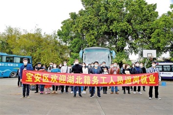 18日,除秭歸縣送來38名離鄂返深復工人員外,湖北省蘄春縣和鍾祥市隨後送來離鄂返崗員工122名。自2月18日起,寶安區人力資源局開通「點對點」返崗復工愛心專車,先後安排320部大巴,接回返崗務工人員近8000人,專車接回務工人員數量居全市第一。