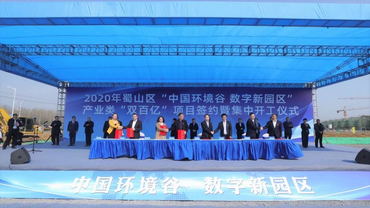 【香港商報網訊】3月21日上午,2020年合肥市蜀山區「中國環境谷 數字新園區」產業類「雙百億」項目簽約暨集中開工儀式順利舉行。此間共有18個項目集中籤約,總投資達102億元,涵蓋環保、大數據、總部基地、金融、人工智能、跨境電商、大健康等多個領域;12個項目集中開工,總投資達101億元。
