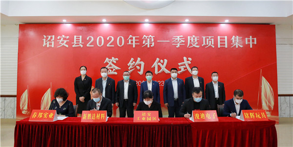 【香港商報網訊】日前,福建詔安縣在詔安賓館舉行2020年第一季度項目集中籤約儀式, 7個項目在儀式上籤約,計劃總投資15.2億元。縣委書記陳文聰、縣長李亞容參加簽約儀式並見證簽約,副縣長陳龍躍主持簽約儀式。