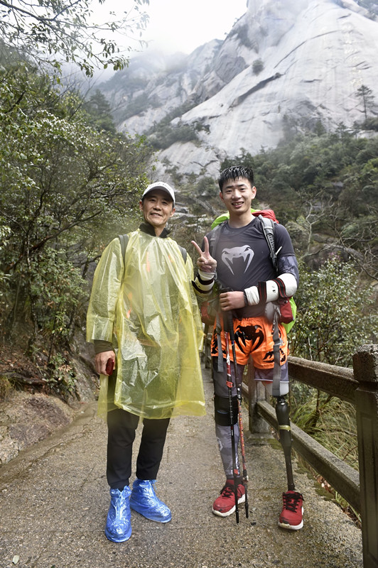 手術後不久,張旭印就穿上了義肢學習走路。不到兩個月的時候,他便開始了自己的登山之路。19個小時登頂泰山,24個小時登頂華山南峰,隨後是嵩山、恒山和衡山,同年9月,他連爬了黃山、廬山和雁蕩山,完成了登頂“三山五嶽”的挑戰。