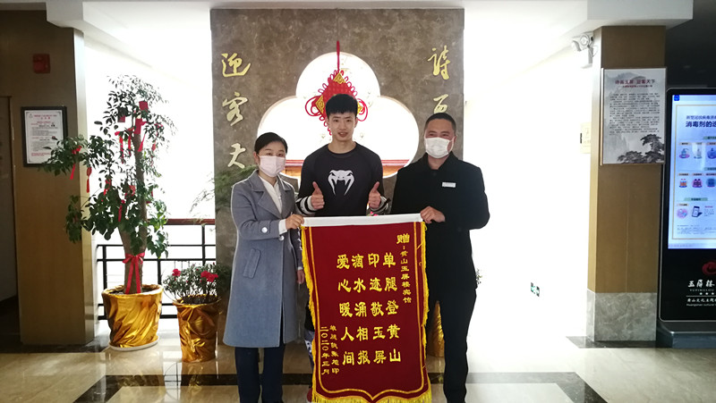 有了上次爬黃山的經驗,張旭印這次速度快了很多,只用了4個小時不到,便從慈光閣來到心心念念的玉屏樓。潘美麗見到張旭印,接過這份滿載毅力與勇氣的錦旗,深受觸動,“我們只是做了力所能及的事情,企業應該要有這種擔當!”