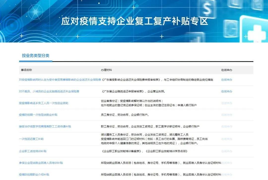 江門市还對向重點企業成功介紹首次到江門就業員工的人力資源服務機構給予400元/人的補貼,並吹響專業力量「集結號」,組織48家人力資源服務機構組成五邑企業「復工戰」HR先鋒隊,構建政府指導、專業機構參與、市場化運作的人力資源供需對接新格局,共有568家企業在七大網絡招聘平台發佈4737條崗位招聘信息,擬招聘1.61萬人,收到1.09萬份求職簡歷,共為3.47萬人提供求職服務。