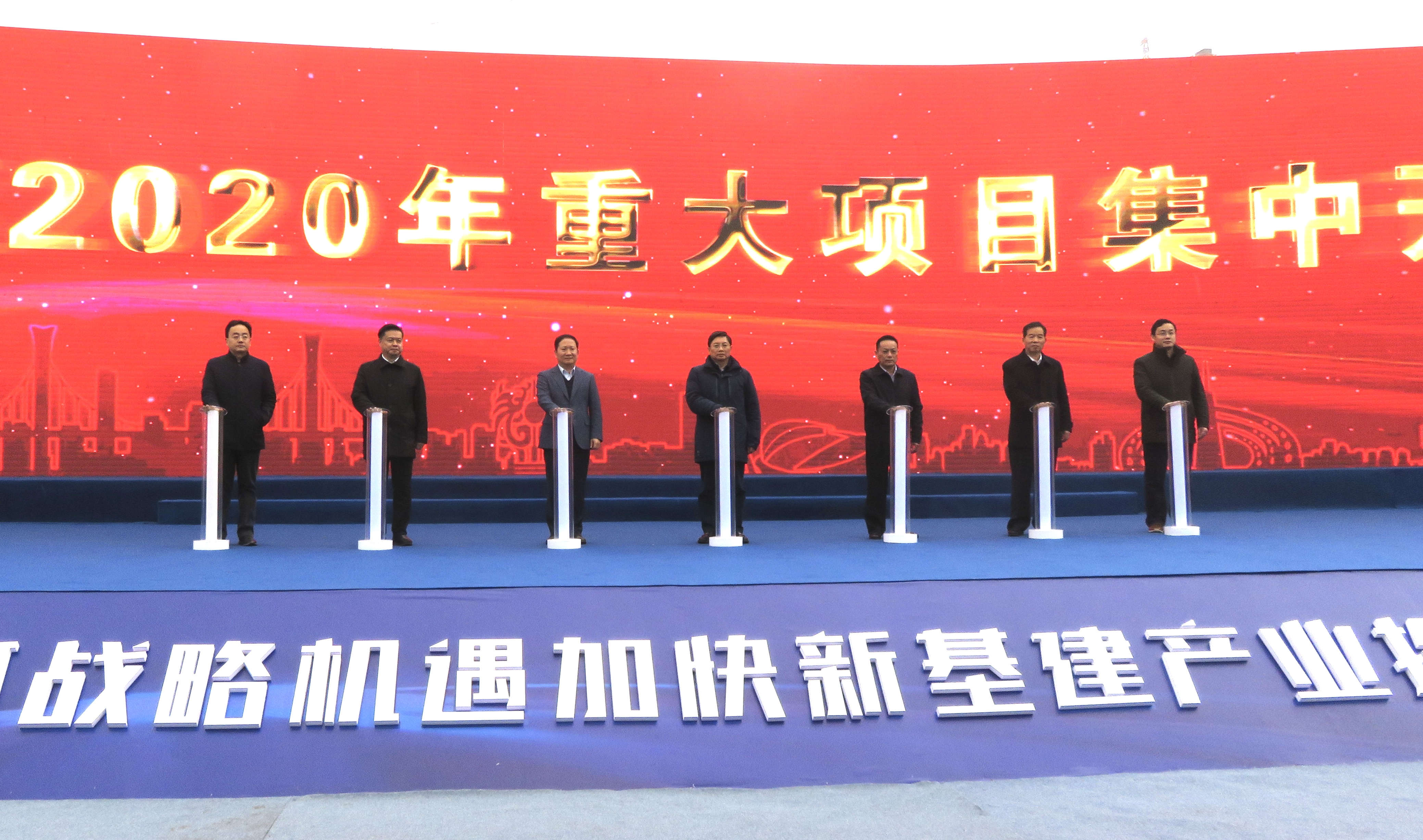 江蘇省委常委、南京市委書記張敬華(中)出席江寧區2020年重大項目集中開工儀式,此次江寧區同步開工的65個項目總投資超400億元