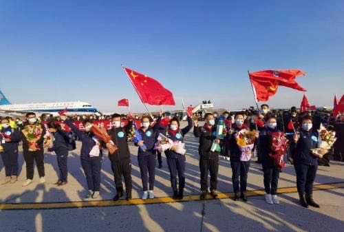 【香港商報網訊】3月31日,黑龍江省第一批援鄂醫療隊的137名醫護人員乘CZ5259航班於16時03分在哈爾濱太平國際機場降落;滿載着黑龍江省第四批援鄂醫療隊哈醫大一院160名隊員的CZ5264航班於16時07分在哈爾濱太平國際機場降落;滿載着黑龍江省第四批援鄂醫療隊哈醫大二院160名隊員的CZ5266航班於16時10分在哈爾濱太平國際機場降落;抗疫勇士凱旋歸來。