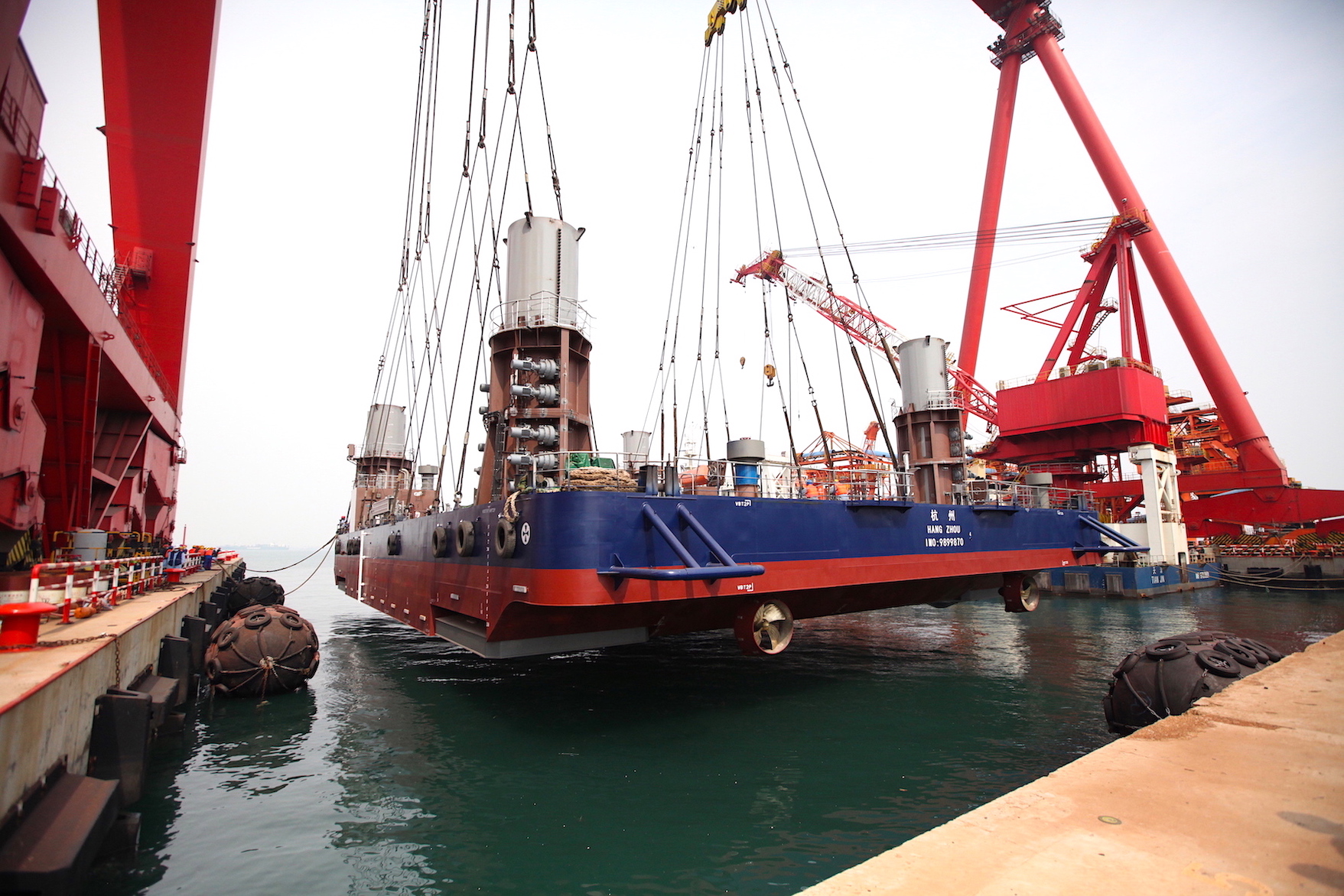 近1440噸的海上勘探平台被輕鬆吊起,準備下水 滕以慶攝