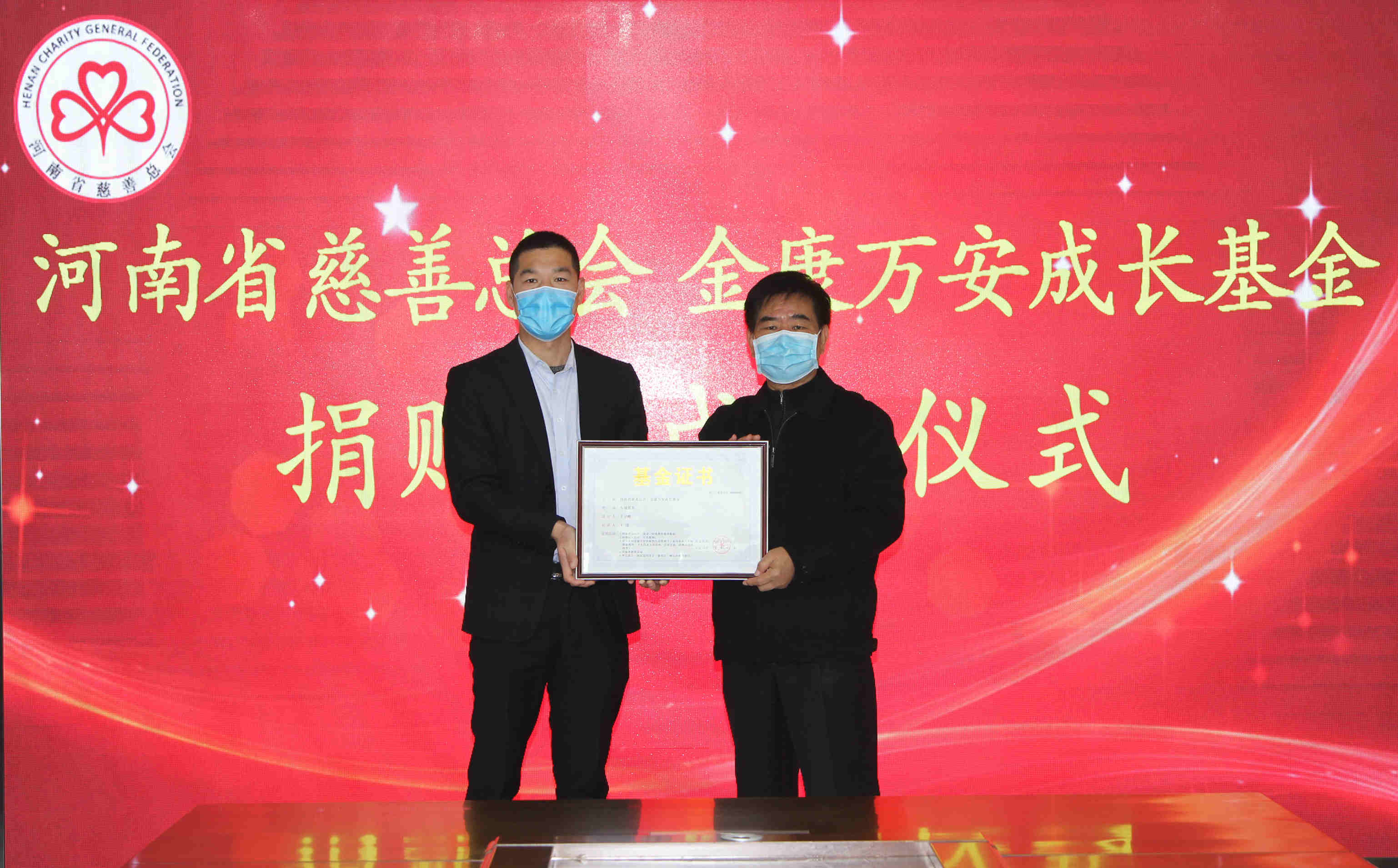 王衛峰在啟動儀式上說:「金康萬安一直以來都積极參与、支持慈善事業,把『孝、慈、仁、善』作為企業文化,在這次新冠肺炎疫情期間,公司上下動員捐款,共向漯河市捐贈防疫物資29萬多元。今天在這裡成立的『金康萬安成長基金』,通過省慈善總會救助更多困難群體,傳遞愛、踐行愛。」
