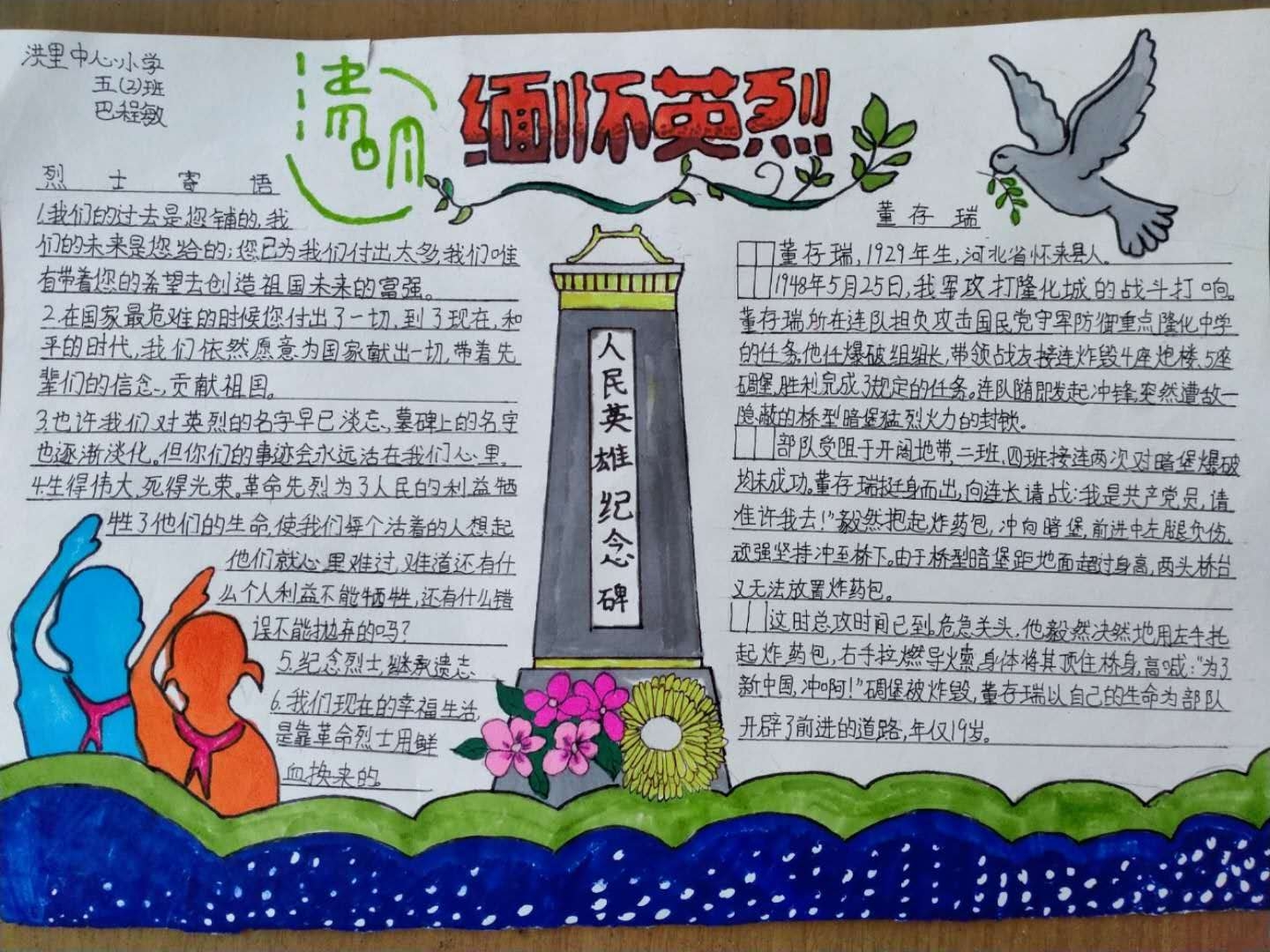 洪裏小學五年級學生巴程敏手抄報
