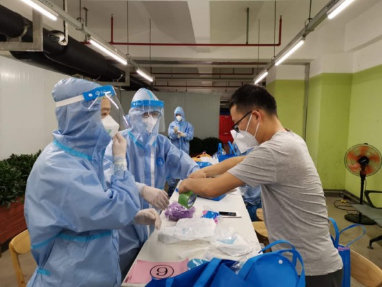 隨着入境人員日益增多,防控壓力也在升級。關鍵時刻,黨員幹部紛紛請纓,要做勇敢擔當的「逆行者」,要到能保護人民群眾安全的第一線去。對黃埔抗疫鐵軍而言,疫情就是命令,防控就是責任——每次參與機場轉運,大家穿着悶熱不透氣的防護裝備連續奮戰5、6個小時,有時甚至要持續工作近10個小時。為了不影響工作進度、節約防護用品,轉運人員經常數小時不吃不喝不上廁所。有的人因此犯了胃病,有的因此尿路感染,有的人因此累倒。連續奮戰至今,黃埔區轉運工作組每個人都難掩面容上的疲憊。但就是在這樣的情況下,工作組完成了最多一批次144名入境旅客的快速轉運、安置、交接工作,以及臨時新增50名入境旅客緊急安置任務等一系列困難和挑戰。