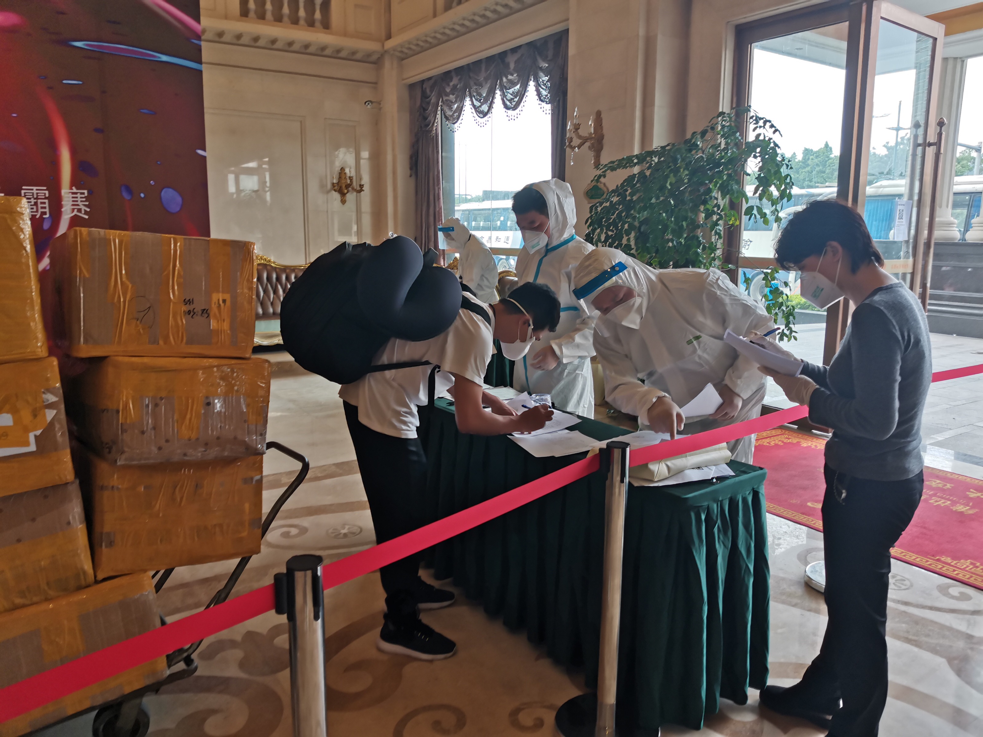 在夏港街的隔離酒店,街道入境人員服務工作組負責人謝賢輝、萬哲帶着全組人員通力合作,既要嚴格按防疫要求辦理手續,也要化解突發矛盾,做好解釋、安撫工作,確保全部留觀人員安全、有序、便捷入住酒店。工作人員每天24小時輪流值守前台,主動電話徵詢旅客需求,提供個性化服務,做好心理疏導;定時段為隔離人員轉運外賣、快遞等物品,並做好安全檢查;在得知一位酒店隔離人員患有高血壓疾病卻沒有葯時,他們立刻到藥店買葯送到房間門口……連日來,夏港街入境人員服務工作組解決問題在一線、服務群眾在一線,牢牢守住「外防輸入」重要關口。 截至4月9日,黃埔區設置了13家酒店共1500間客房開展入境人員集中隔離醫學觀察工作,現已使用1166間客房。