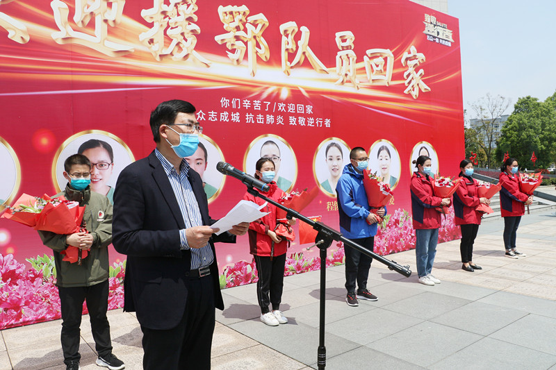 【香港商報網訊】截止4月10日上午,安徽黃山市休寧縣派出的2批援鄂醫療隊7名成員全部平安歸來,家鄉人民舉辦了隆重而熱烈的歡迎儀式。休寧縣委書記盧邦生,縣人大常委會主任汪美月,縣政協主席儲曉華,縣委副書記、統戰部長洪建坤,縣政協副主席、縣總醫院院長寧衛華出席歡迎儀式。