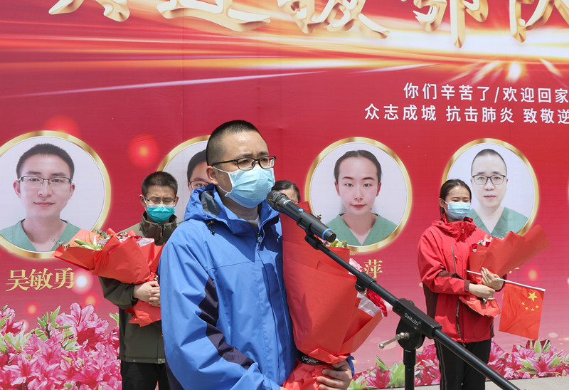 該縣總醫院血液透析科主任宋學軍代表援鄂醫療隊分享了援鄂期間的點滴。他說:“在湖北支援的日子難忘而堅定,但我們堅信這場無硝煙的戰役終會取得勝利。”