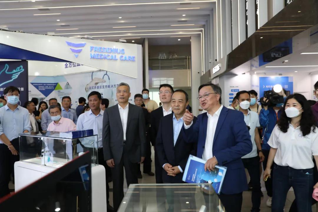 海南常務副省長毛超峰等領導,省藥監局局長賈寧,樂城管理局局長顧剛等領導正在巡館。