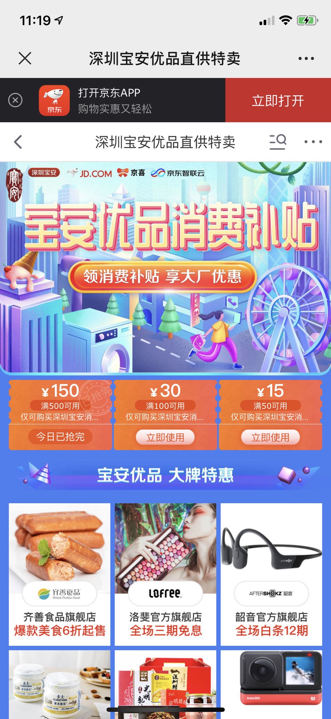 開設「寶安優品」專區,發放5000萬元優惠券
