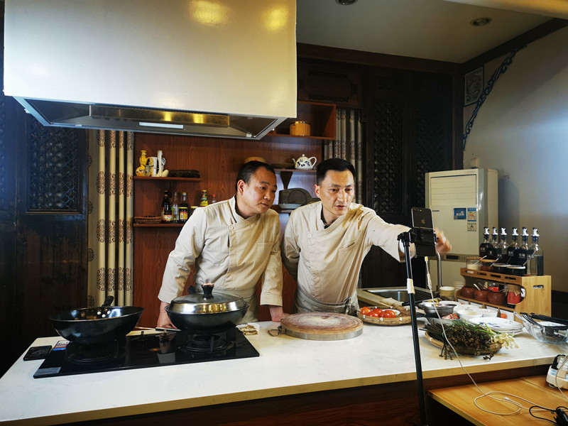 【香港商報網訊】“大家晚上好,歡迎大家來到食味徽州的直播間,傳播徽菜,以菜會友,想和天下喜歡美食的朋友一起相互學習,探討我們徽州美食。”4月14日晚上,在安徽黃山市屯溪區奕棋鎮的龍華食府餐飲店,一場關於美食的直播正在上演。