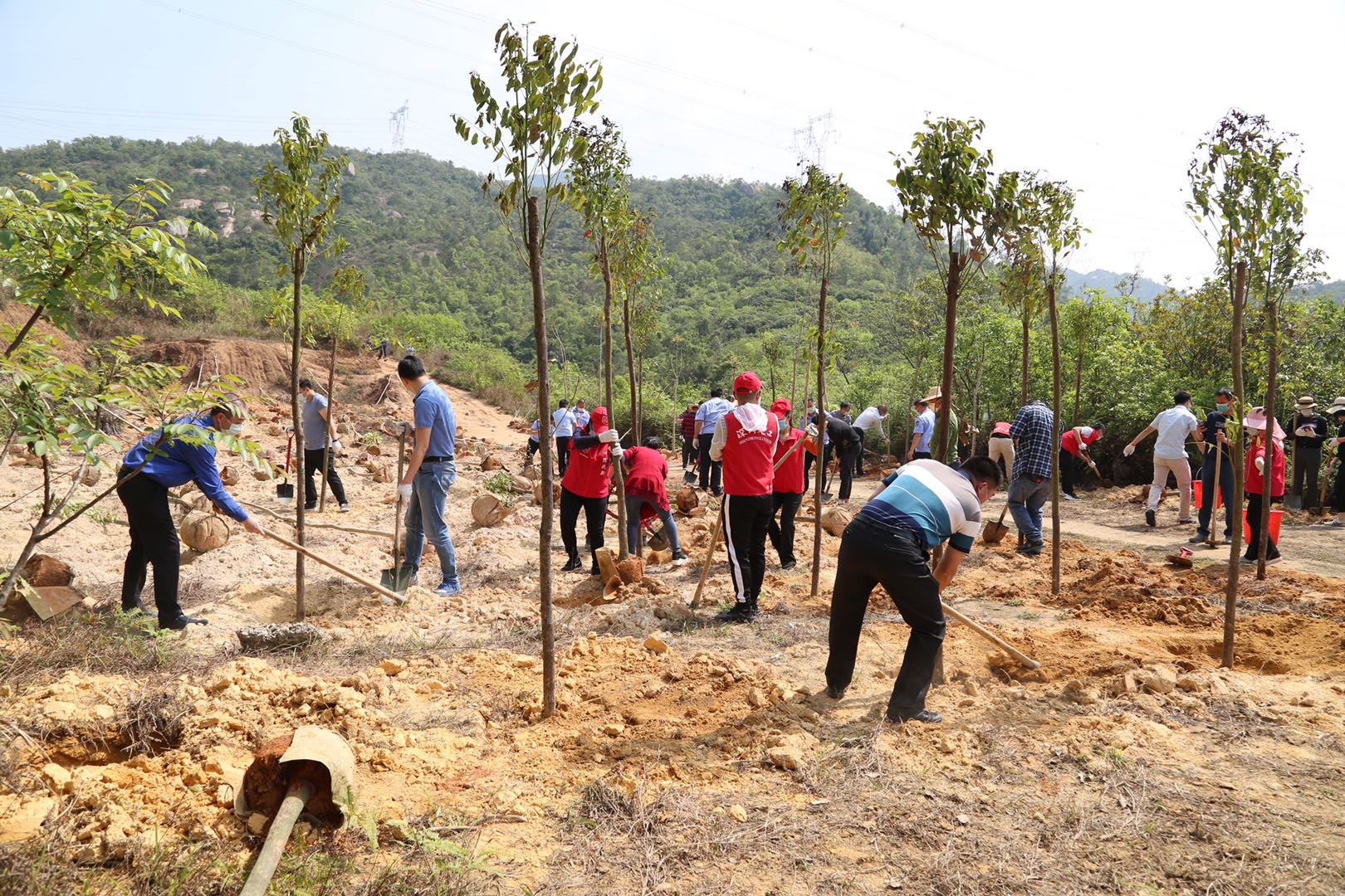 植樹現場,大家三五人一組,分工有序,有的搬運樹苗,有的挖坑栽苗,有的揮鍬填土,大家一絲不苟,幹勁十足。經過一上午的辛勤勞動,300餘棵新栽樹木迎風挺立,為春日大地增添了一片新綠。據了解,現場共種植中火焰木、樟樹、黃槿等樹苗340棵,其中黃瑾40株、樟樹150株、火焰木150株,總植樹面積達0.15公頃。