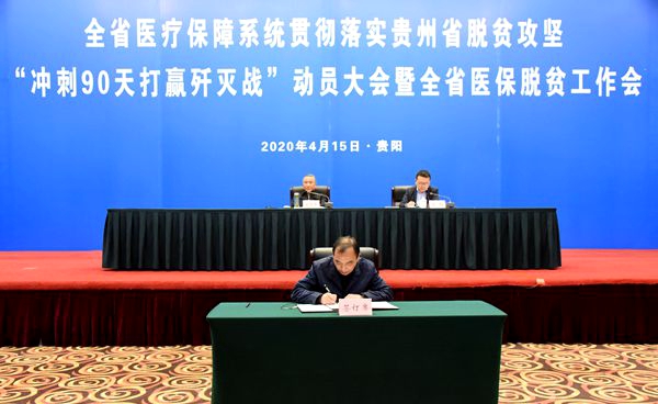 【香港商報網訊】近日,經貴州省人民政府批准同意,貴州全省醫保系統貫徹落實脫貧攻堅「衝刺90天打贏殲滅戰」動員大會暨全省醫保脫貧工作會在貴陽召開。會議通報了貴州省醫療保障局2019年脫貧攻堅工作情況;全省各市(州)有關負責同志簽訂了《脫貧攻堅總攻責任狀》。