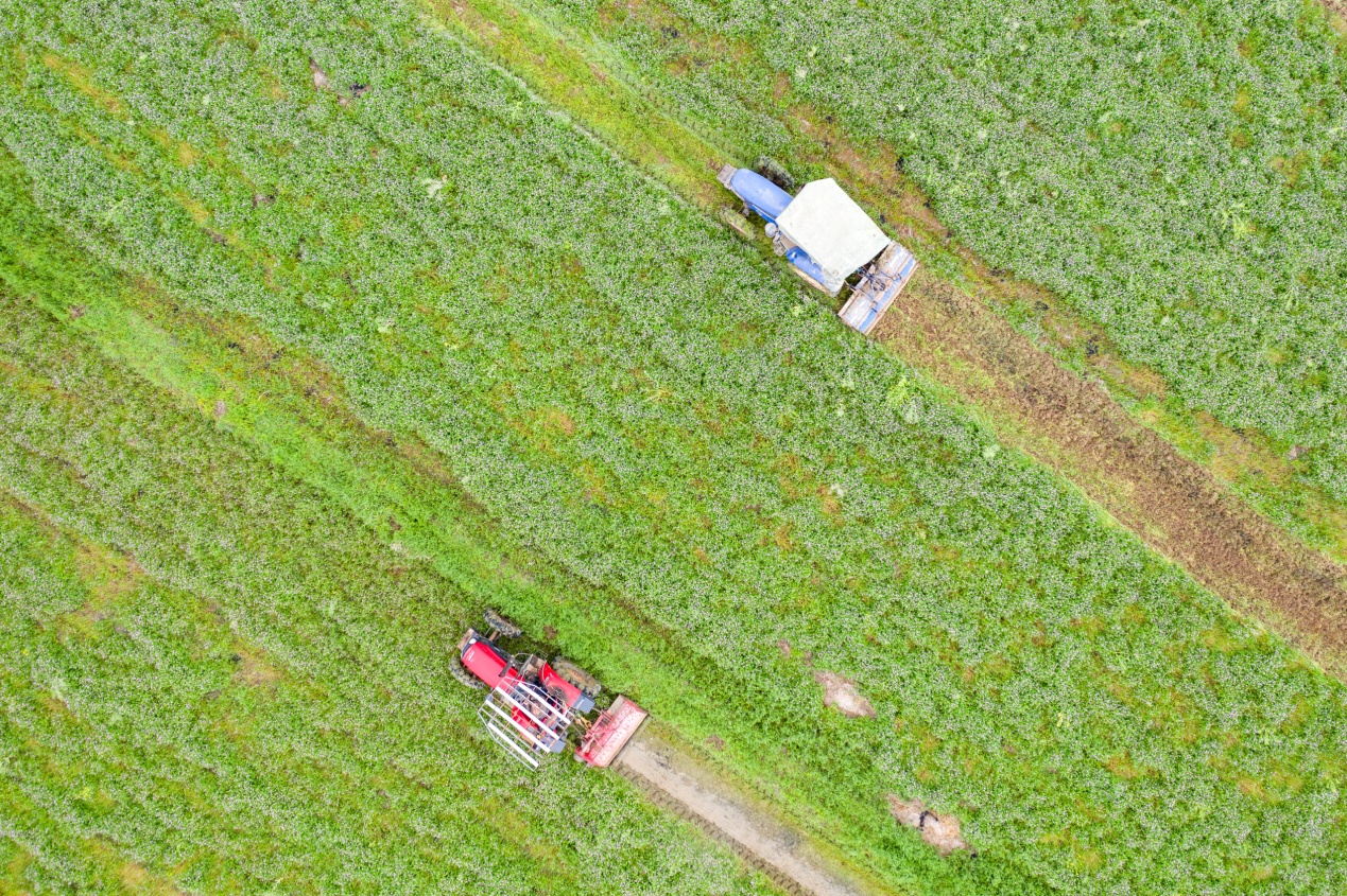 【香港商報網訊】4月19日,安徽省合肥市肥東縣古城鎮世昌水稻種植專業合作社的承包地內,碎草機和旋耕機正在進行紫雲英粉碎碾壓和田地翻耕作業。