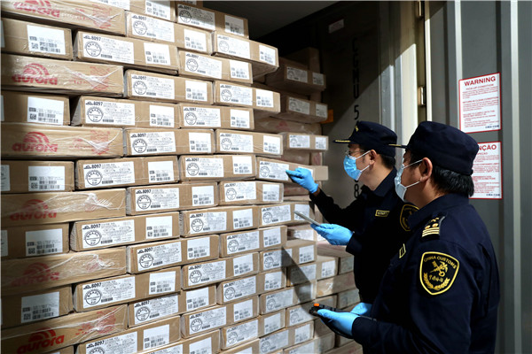廣州海關所屬南沙海關關員在南沙保稅港區的跨境電商倉庫巡倉監管——葉兆權攝