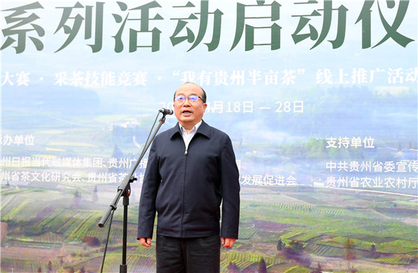 貴州省人大常委會黨組副書記、副主任,省茶產業發展領導小組組長慕德貴在啟動儀式現場講話 趙松 攝