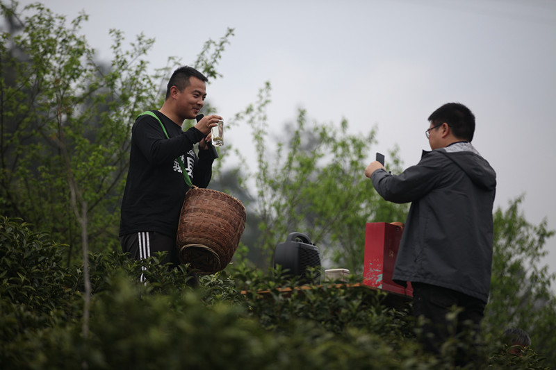 從春茶開園採摘起,張皓就一直“泡”在茶園裏,拍視頻、做直播,通過線上推廣、線上交易的方式,為茶農春茶銷售牽線搭橋。