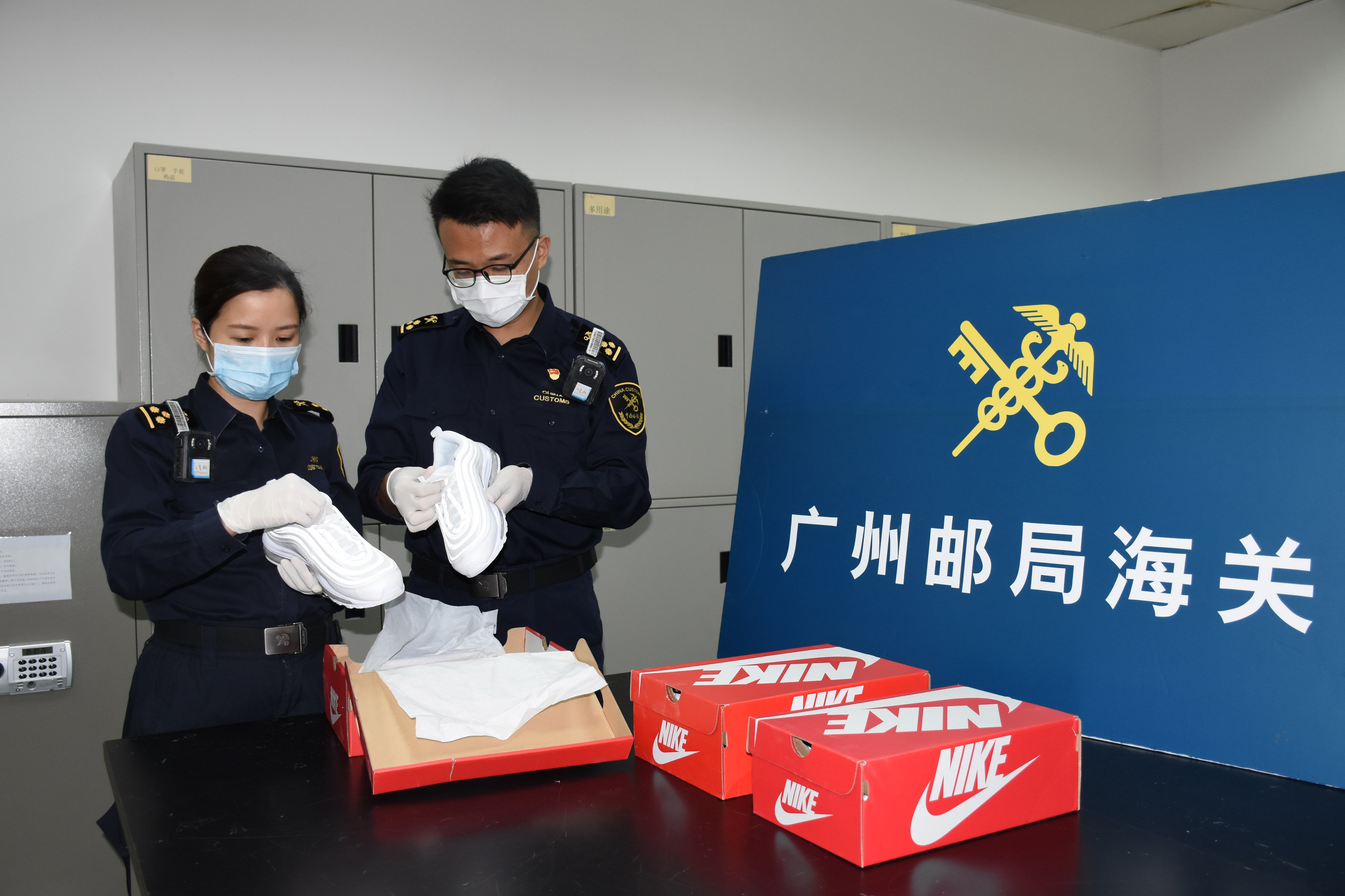廣州海關所屬廣州郵局海關查獲侵犯「NIKE」商標權的鞋子
