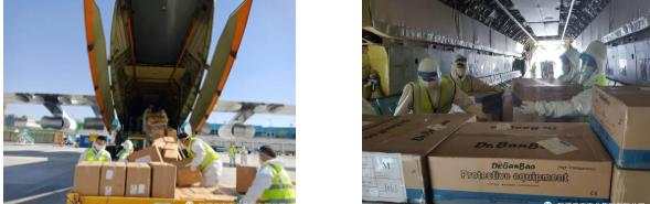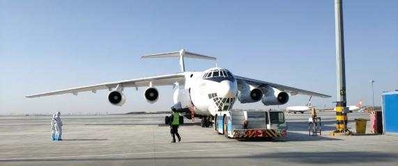 4月23日由哈薩克斯坦包機起飛,11時21分降落烏魯木齊地窩堡國際機場,此次包機將裝載包括口罩在內價值千萬元的防疫物資,於當天下午18時35分返回哈薩克斯坦