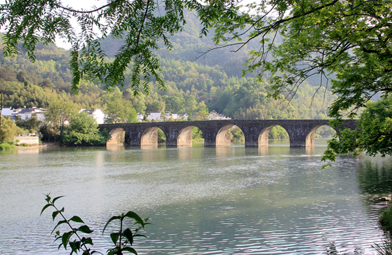 在安徽休寧橫江段,登封橋、藍渡橋、古城橋等一座座古橋,古色古香,古樸典雅,跨臥在橫江兩岸,與古樹古塔相守相望,成為橫江上一道獨特而美麗的風景。置身其中,使人賞心悅目,心曠神怡,吸引著來往外地遊客駐足觀賞。(吳敏 曹集林)