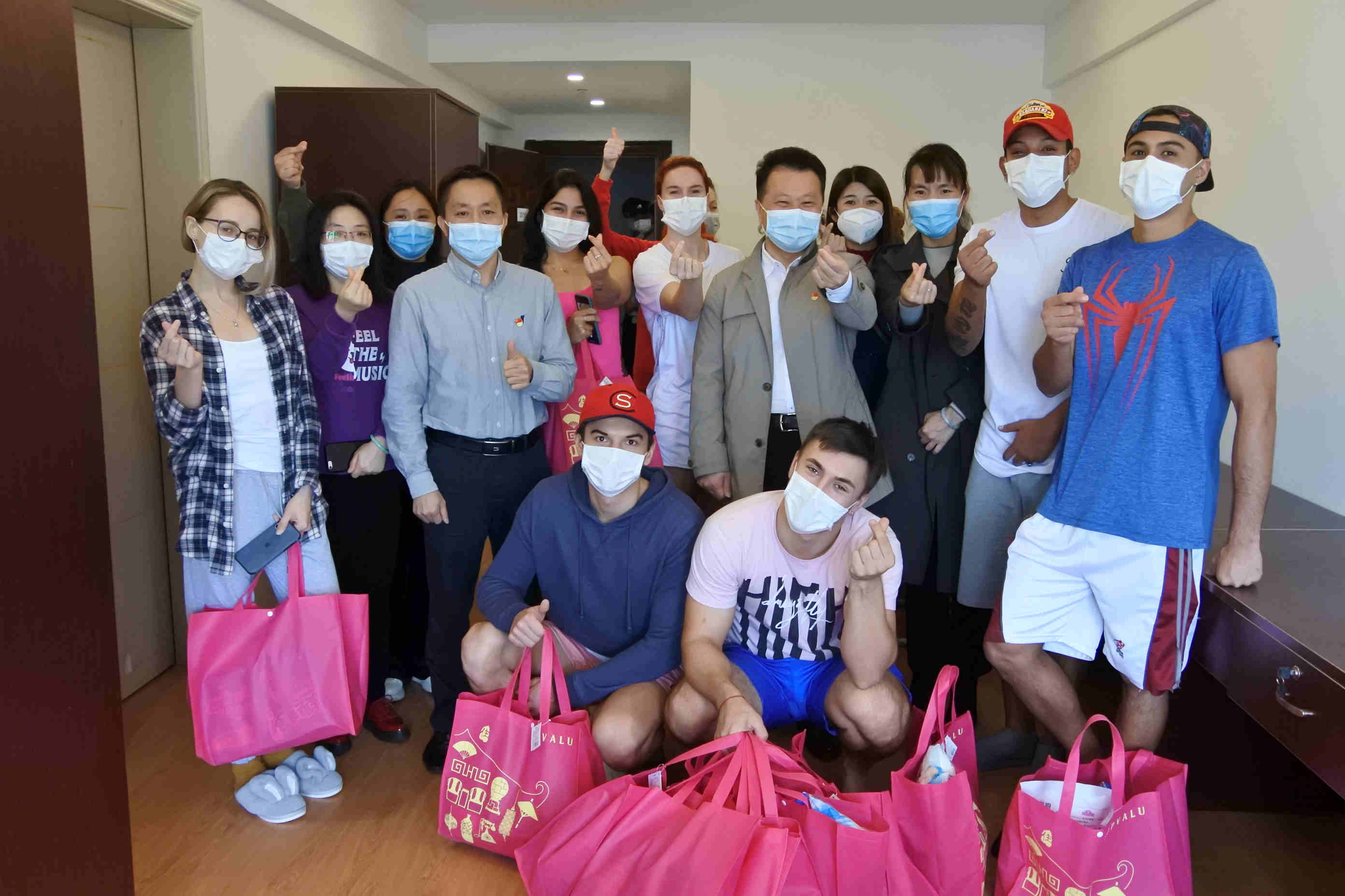 據了解,日前,花城街主要領導帶隊探訪融創樂園19名外籍員工,對他們表示親切的關懷和慰問,並送上餅乾、堅果等禮品和防疫口罩,被隔離人員感到十分溫暖,開心之情溢於言表。