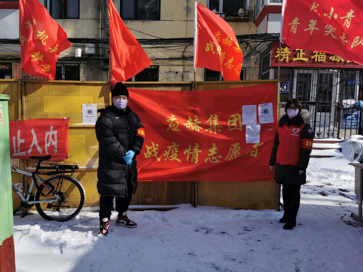 抗擊疫情有兩個主要陣地,一個是醫院救死扶傷陣地,一個基層社區防控陣地。作為集團黨組織負責人,讓黨旗飄揚在疫情防控第一線,是於菠的光榮使命。在團省委的組織協調下,于菠親自帶隊,組織集團黨員及員工90多人組建志願者服務隊,自願下沉到哈爾濱市龍江社區卡點,24小時全天候值守,直面戰「疫」,構築堅實「防線」。卡點所在位置處於背陰處,加之天氣寒冷,基礎設施不健全,為各項工作開展增添了層層難度。值守以來,大家不喊一聲苦,不叫一句累,為社區嚴守防疫關卡,一直堅持到疫情防控風險等級下調。下沉期間,于菠的孩子以及同事家屬們也紛紛主動到社區卡點一同值崗,為防疫工作貢獻力量,這份「全家總動員」的珍貴記憶,令人難忘。