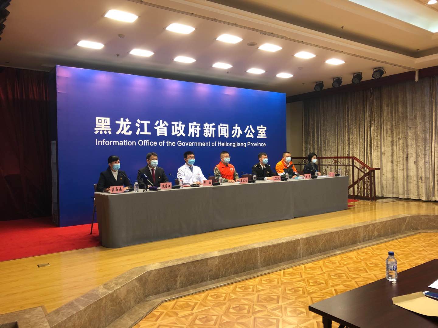 發佈會現場 省第四批援鄂醫療隊心內攻堅組組長、哈醫大二院心內科病區副主任邢磊(左三)