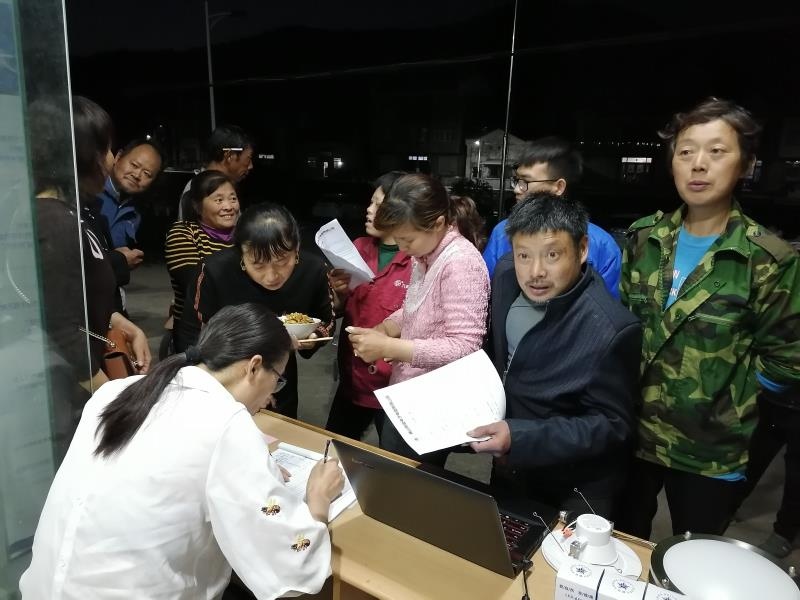 當晚,擺在村委會門口的招聘臺前圍滿了前面報名、諮詢的村民,一些採茶剛收工回家的村婦端著飯碗就趕到了現場。