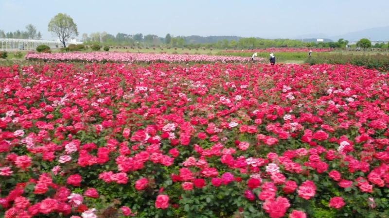 走近安徽歙縣鄭村鎮棠樾村“四月鄉村”農藝場縱橫交錯的花田裏,各種造型的月季花海就像是一塊塊色彩斑斕的織錦地毯,朵朵月季花或嬌豔欲滴,或含苞待放,或燦若雲霞。各種顏色的月季花點綴著少許的露珠,在陽光的照耀下相互交錯,勃發著一派生機,吸引著無數蜜蜂辛勤采蜜。農藝場內,數百米長的月季花廊,由一座座月季花拱門組成,每座拱門上攀附的月季花花色和品種都各不相同,彎彎曲曲如迷宮陣,三三兩兩的市民徜徉在月季花海中,盡情享受假日時光。