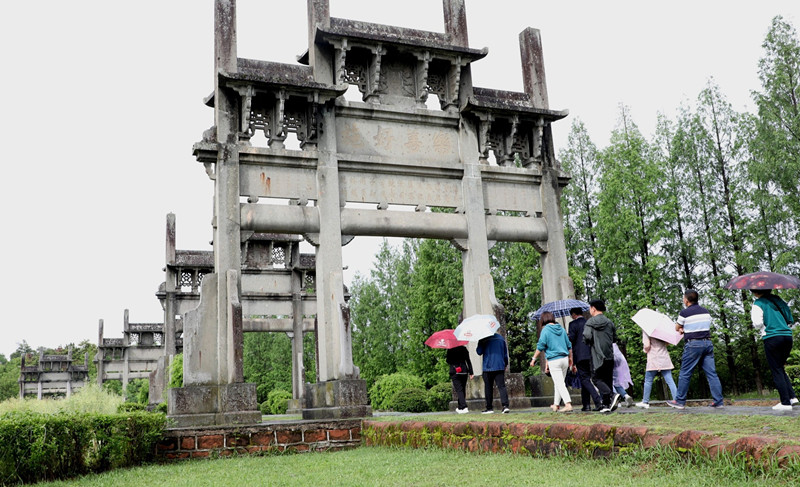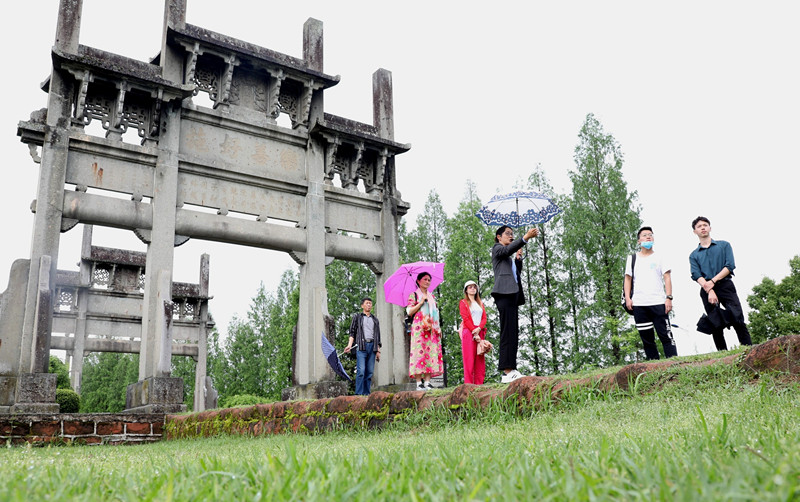【香港商報網訊】5月5日,安徽歙縣鄭村鎮棠樾村牌坊群下,遊客在導遊的引導下品徽州文化、賞夏日美景。