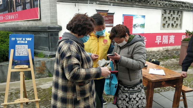 “遊客您好,請您戴好口罩,掃描景區核驗碼,請大家保持1米的距離,一個一個來,祝遊玩愉快。”在西遞景區入口處的志願服務崗,一個個“黃馬甲”正做著貼心提醒,他們面帶微笑,一邊協助遊客申領、掃描核驗碼,一邊提供旅遊諮詢,贏得了遊客的稱讚。