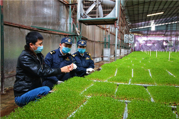 「監管要求調整後,儘管企業無需產品提供自檢報告,但海關監管要求不會放鬆」,南沙海關查檢科關員薛東山介紹,「像這樣的抽樣監督海關會定期開展,我們從蔬菜產區種植的起始環節入手,直接到種植基地開展抽查,現場抽查、現場指導企業解決技術問題,幫助企業提高自檢自控能力」。
