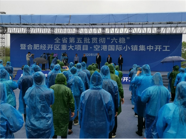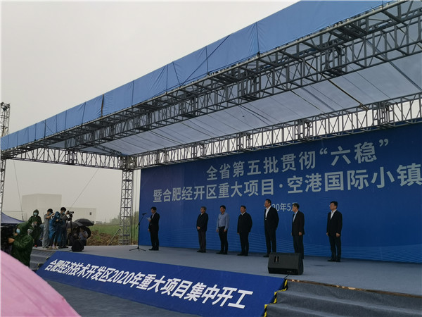 【香港商報網訊】5月8日上午,安徽省第五批貫徹「六穩」暨合肥經開區重大項目·空港國際小鎮集中開工動員大會在合肥空港經濟示範區舉行。此次集中開工項目共107個,總投資1126億元。