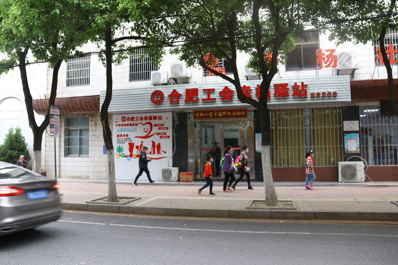合肥工會幸福驛站唐楊站以「一杯熱水,傳遞溫暖;一身問候,體現關心」的服務宗旨,無償提供食品加熱、清洗、製作、冷藏、飲水、手機充電、閱覽書籍、上網、看電視、洗浴、如廁、臨時休息等服務,服務對象主要為環衛工人、快遞員、交通警察等廣大戶外勞動者。