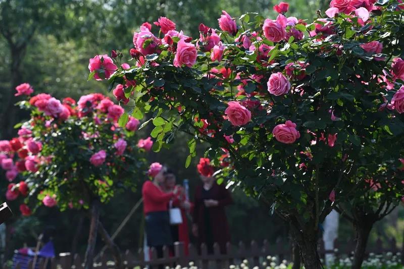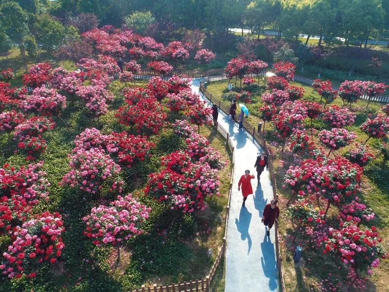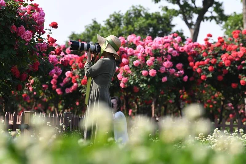 你在花間看風景,看風景的人在湖畔看你。「五一」小長假期間,安徽合肥天氣晴好,位於合肥經開區內的南艷湖公園1605株高桿月季競相綻放,形成了30餘畝的絢爛花海,吸引眾多市民和遊客觀賞與打卡。(張大崗 柏永)