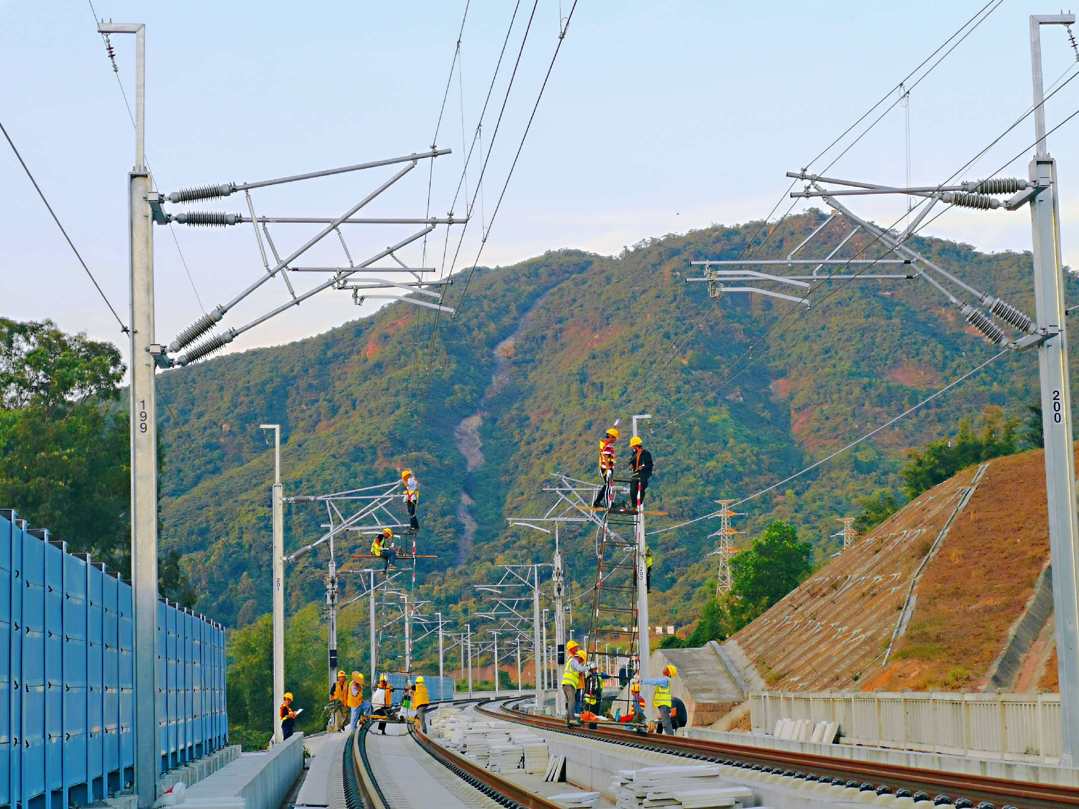 【香港商報網訊】5月9日,隨着廣州北站最後一個錨段接觸網懸掛調整完成,連接廣州市與清遠市的廣清城際鐵路接觸網工程實現全線貫通。此舉也標誌着由廣州地鐵集團運營管理的廣清城際即將吹響靜態驗收、聯調聯試的號角。