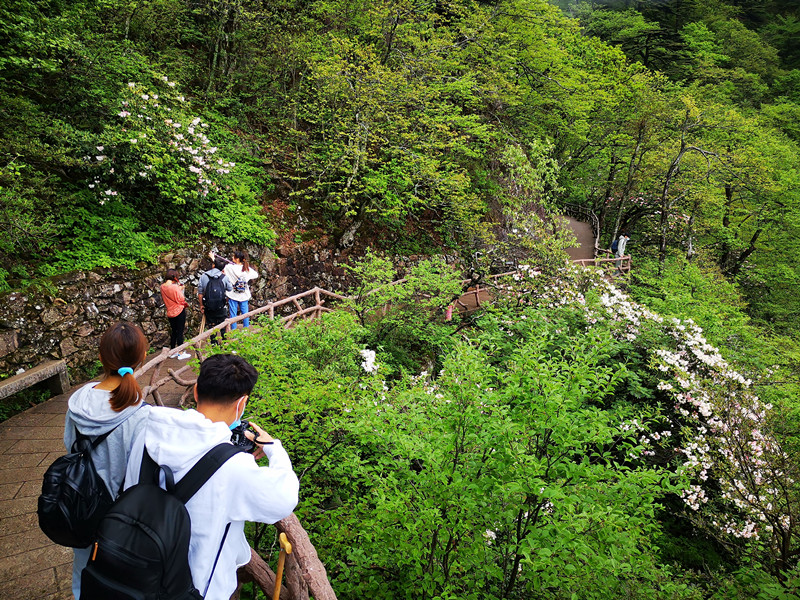 來自浙江紹興的遊客楊雨馨從雲谷索道上山,一路走過來全是黃山杜鵑的陪伴,讓她忍不住詢問工作人員這開遍山野的春花到底是什麼,她興奮地告訴記者,黃山杜鵑是她在別的地方從來沒有見過的,真的特別美,配上山間流動的雲霧,更是感覺仙氣飄飄。