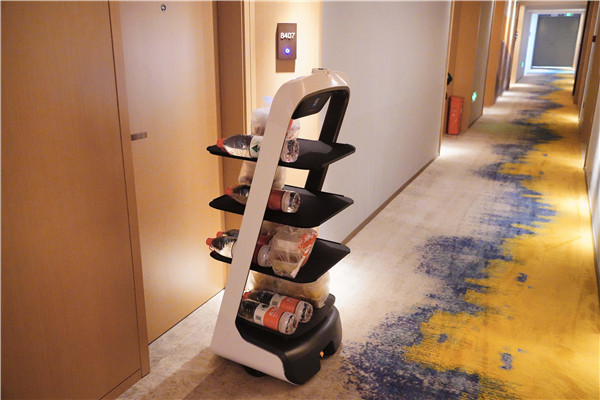 桃源街道醫學觀察酒店,用機械人為隔離人員送去餐食,減少人員接觸風險