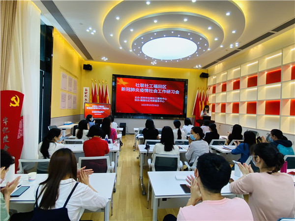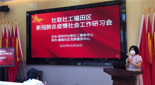 【香港商報網訊】5月11日,深圳市中小學生返校。同日,深圳市社聯社工服務中心的35名參與新冠肺炎疫情防控的社工們也開展了一堂特別的課程。近日,「社聯社工福田區新冠肺炎疫情防控社會工作研習會」在深圳福田區華強北街道福強社區黨群服務中心內召開,會議共有兩項議程,分別為《福田區社區防疫防控社會工作實踐分享》與《新冠肺炎疫情社會工作團體標準下的常態化社區防疫社會工作服務研習》。