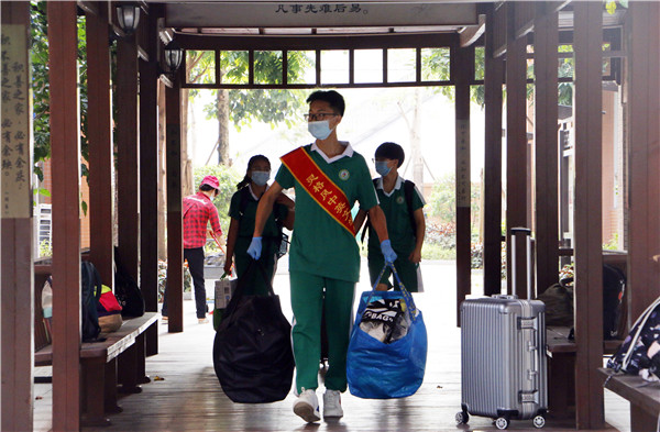 據鄺維煜紀念中學負責人介紹,第二批返校學生共2000多名,實行4個時間段錯峰返校,其中上午是高一、高二年級錯峰迴校時間,下午是初一、初二年級錯峰迴校時間。每個學生都需要佩戴口罩進入校園,上課單人單桌。為錯峰上下學,初中部取消早讀,改為午讀,各年級學生返校複課後按新的作息時間錯峰迴校。復學首日,將以心理輔導、防疫知識為主要內容,上好開學「第一課」。