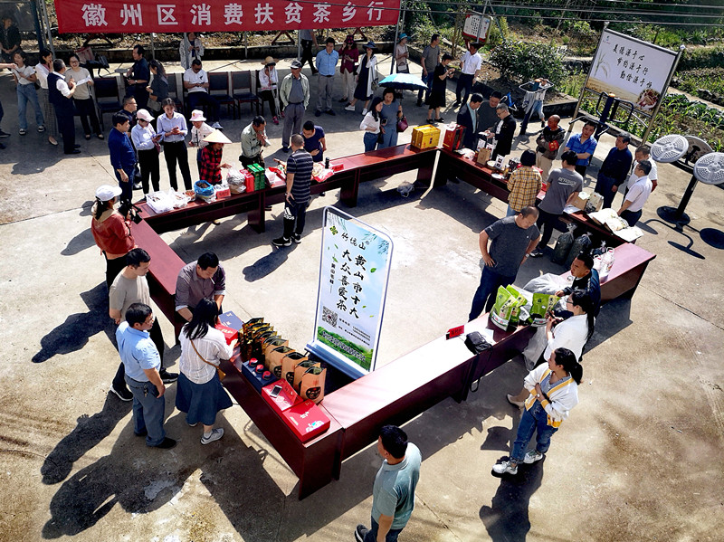 除了線下實體購買,徽州區還排定了166款農特產品在“徽州優品”電商扶貧網路平臺進行線上銷售,設計4款扶貧大禮包作為旅遊伴手禮,同時選定42款茶葉作為辦公用茶在企事業單位進行推銷。
