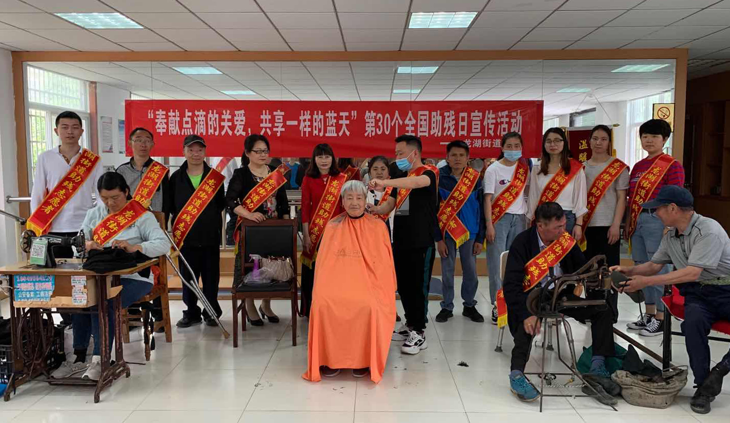 在龍湖新城社區一樓舉行的好人志願服務活動中,轄區「蕪湖好人」胡之勤現場為殘疾人朋友免費理髮。在活動現場,龍湖街道殘聯工作者為居民舉辦健康知識講座,講解高血壓、冠心病、糖尿病、心腦血管疾病等中老年常見病的預防與保健知識。